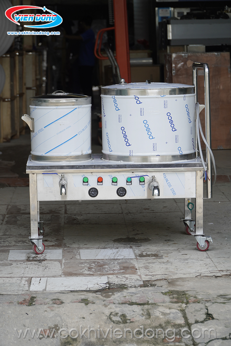 Nếu muốn tiết kiệm diện tích cho quầy bán hàng mà vừa nấu được nhiều loại nước lèo, khách hàng không nên bỏ qua nồi nấu bún phở đôi. Sản phẩm phù hợp để đứng bán tại quầy, gồm 2 nồi nấu phở inox điện đơn nhưng được gắn chung trên 1 chân đế.